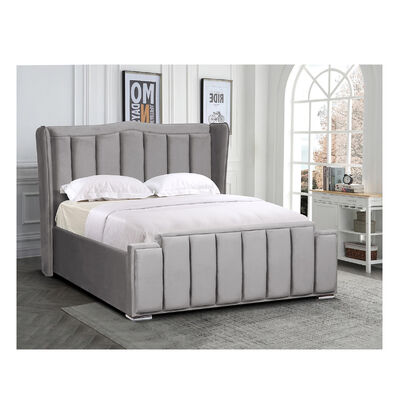 12275 Upholstered Velvet Minimalist design Queen King Grey shell Full size Modern Winged Storage bed