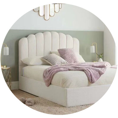 12285 Upholstered Boucle Monaco Cream Queen King White shell Full size Modern Storage Ottoman bed